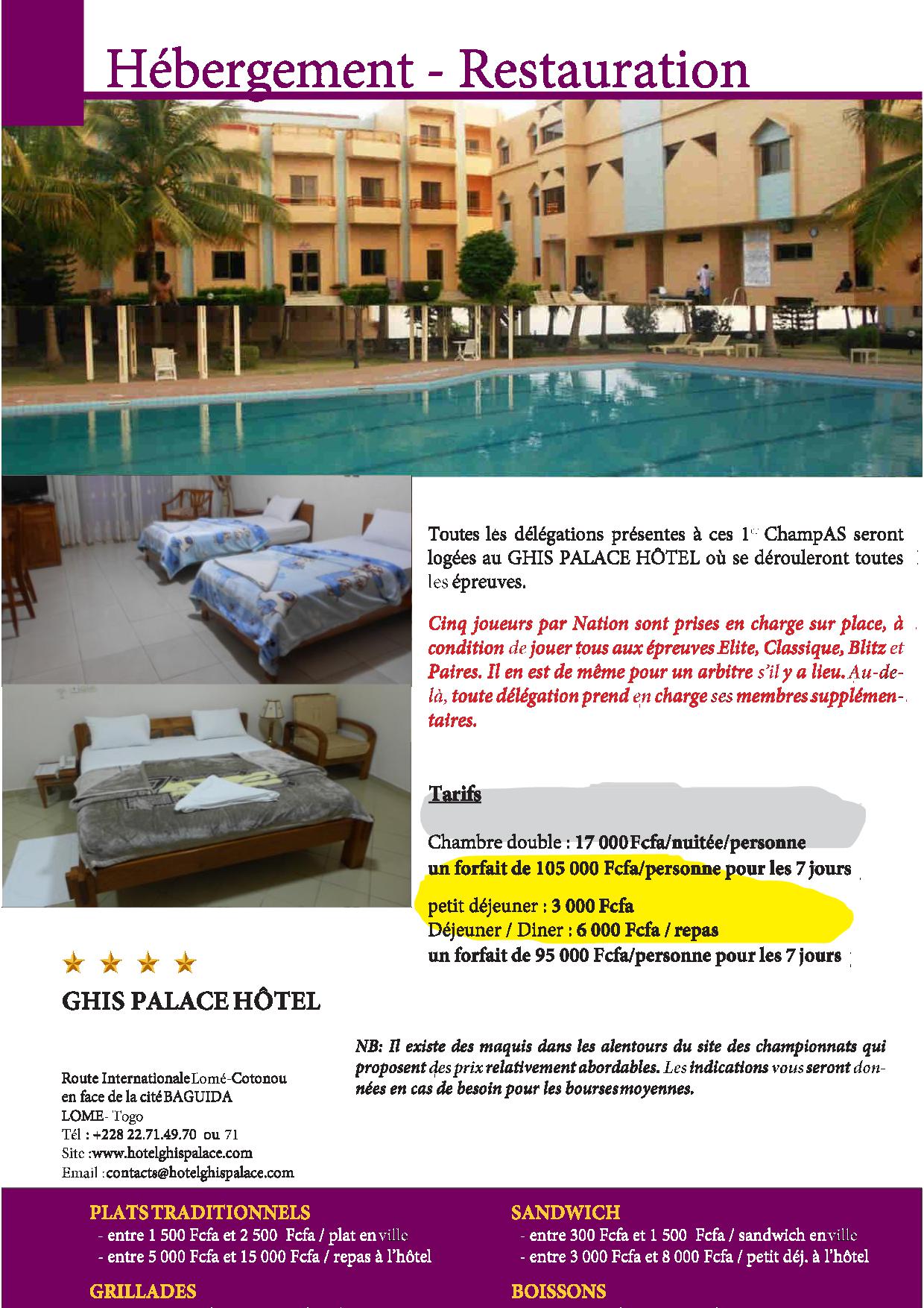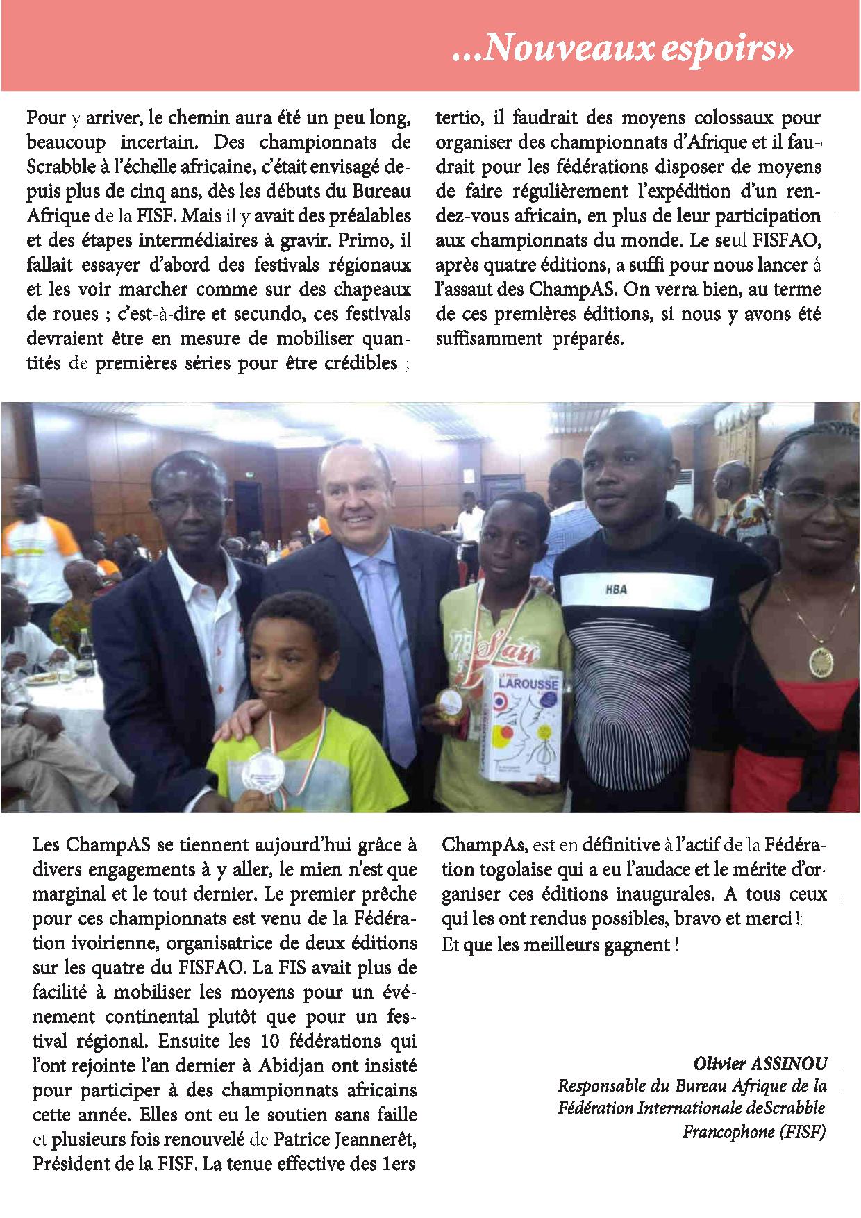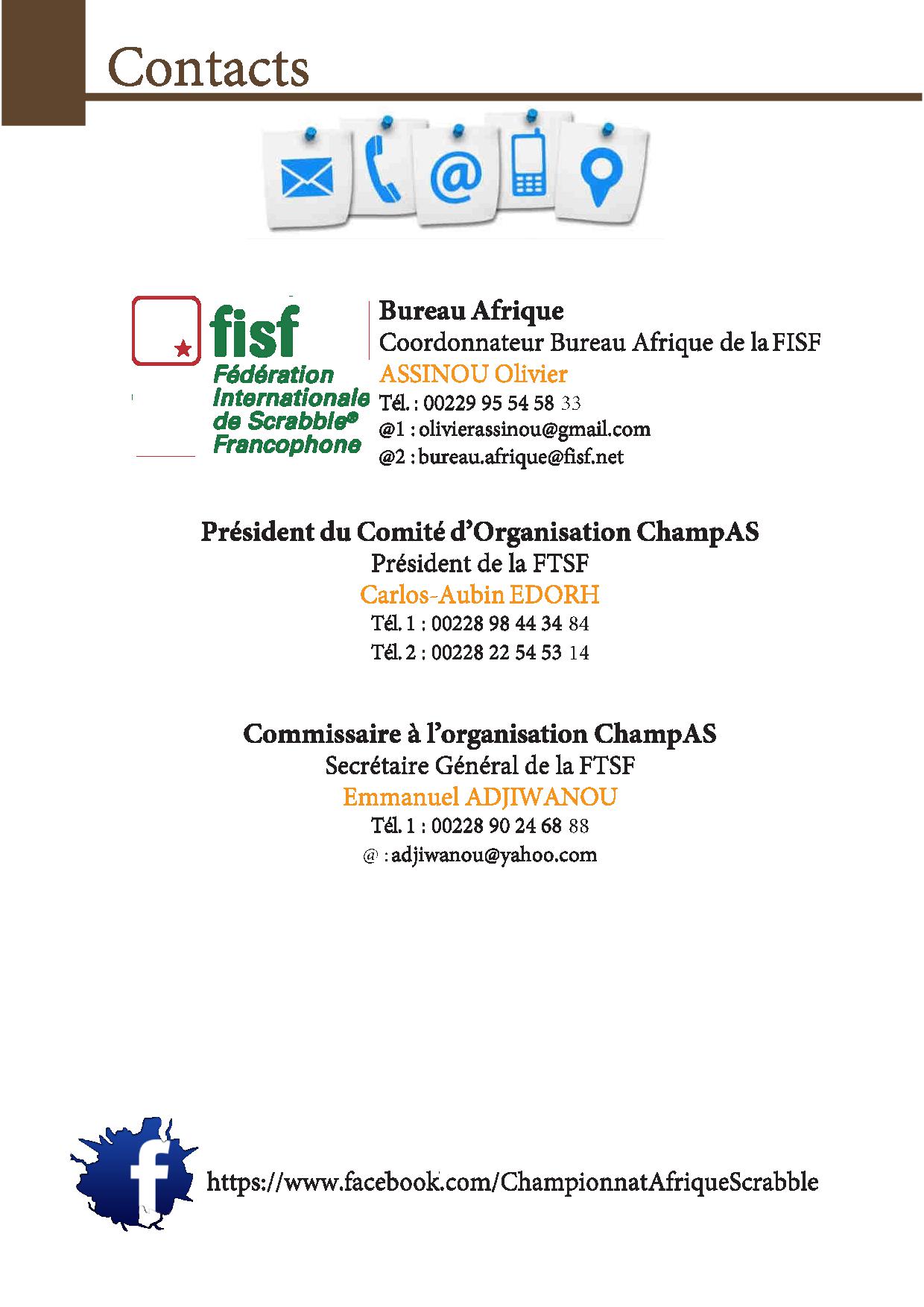 Du 23 au 27 mars 2016 auront lieu les 1ers Championnats d'Afrique de Scrabble (ChampAS) au Ghis Palace Hôtel de Lomé (Togo).